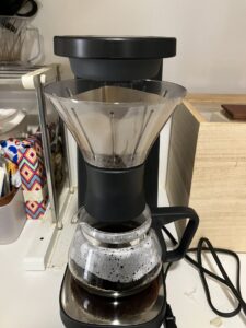 電源ボタンはなく、ドリップ開始から30分経つと自動でOFFになる親切設計。それまでは保温してくれるので、いつでも熱々のコーヒーが楽しめますよ。 (私は待機電力を考えて、ドリップが終わったらコンセントを抜くようにしています!)